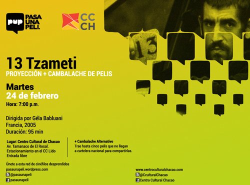 Este martes 24 de febrero a las 7:00 p.m. se proyectará la película 13 Tzameti en la Sala Experimental del CCCH, en la Avenida Tamanaco, El Rosal, con entrada libre.