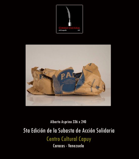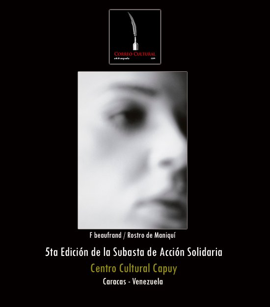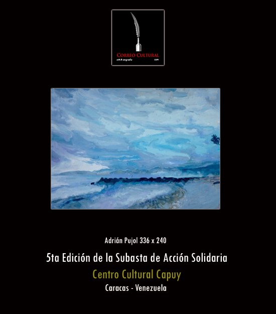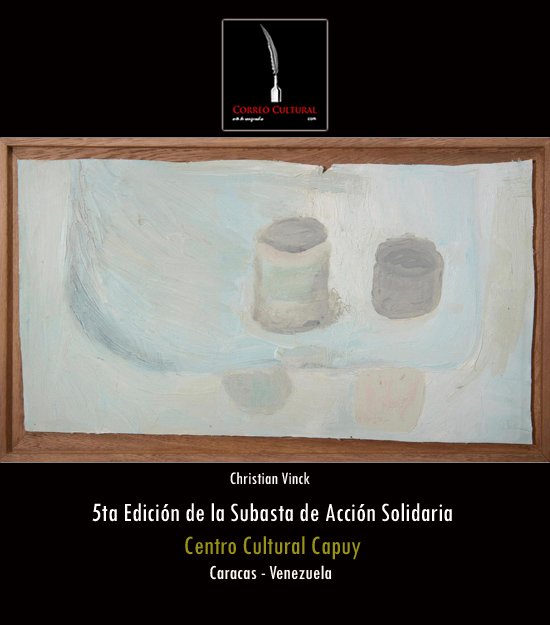 La exposición de las obras que participarán en la 5ta Edición de la Subasta de Acción Solidaria será inaugurada este domingo 22 de febrero a las 11:00 a.m. en el Centro Cultural Capuy, ubicado en el Centro Comercial Express Chacaíto, y permanecerá hasta el domingo 1° de marzo a las 11:00 a.m., cuando se realizará la subasta de las obras. El horario al público de la muestra en los espacios Capuy es de lunes a sábado de 10:00 a.m. a 7:00 p.m. y domingo de 10 a 6:00 p.m.
