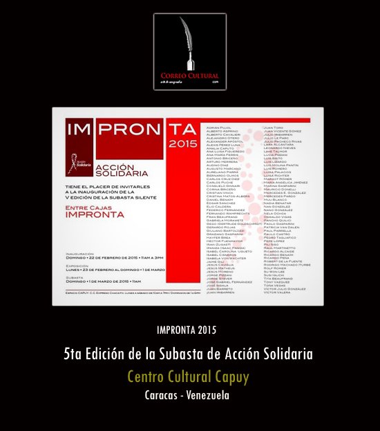 Con alrededor de 130 obras donadas por más de 100 artistas venezolanos, se llevará a cabo la 5ta Edición de la Subasta de Acción Solidaria a beneficio de los programas de asistencia a las personas con VIH, que bajo el título “IMPRONTA”, tendrá lugar el domingo 1° de marzo a las 11:00 a.m. en el Centro Cultural Capuy –ubicado en el Centro Comercial Express Chacaíto– donde estarán expuestas las piezas a subastar desde este domingo 22 de febrero.