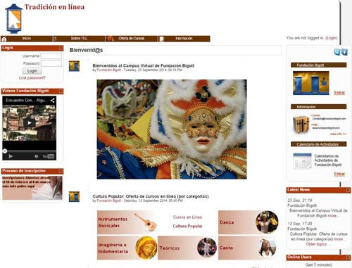 Enero.- A través de la página web www.tradicionenlinea.comFundación Bigott amplía la posibilidad de que más personas puedan acercarse a los contenidos de sus Talleres de Cultura Popular. Esto es posible gracias una plataforma e-learning que contiene múltiples recursos didácticos que conducen hacia el aprendizaje de contenidos de cultura popular de raíz tradicional. Desde el 18 de febrero al 8 de marzo son las inscripciones para el primer ciclo de talleres de este año.