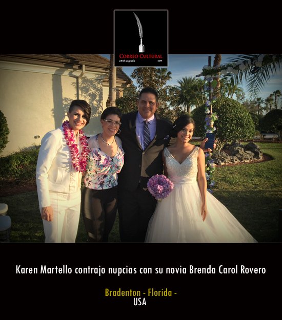 El pasado 7 de febrero en horas de la tarde, la intérprete venezolana Karen Martello contrajo nupcias con su novia Brenda Carol Rovero, con quien mantenía un noviazgo desde hacía 3 años. De esta manera, la cantante se convierte en pionera, al ser la primera artista venezolana en casarse en el estado de La Florida, luego de haber entrado en vigencia la Ley de aprobación del matrimonio gay el pasado 6 de enero del 2015.