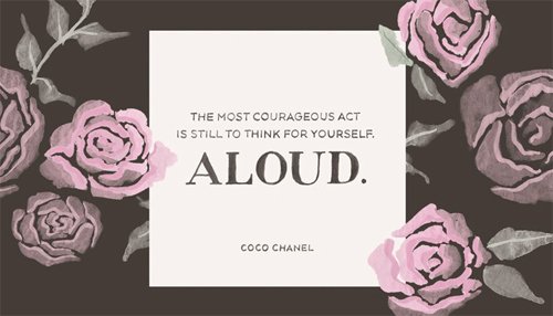 La galería incluye citas de diversos personajes como Martha Washington, primera dama de Estados Unidos; Zadia Smith, talentosa escritora británica; Benazir Bhutto, ex primer ministro de Pakistán; Coco Chanel, diseñadora francesa creadora de la marca Chanel; Sheryl Sandberg, directora operativa de Facebook y la propia Christiane Amanpour, quien es corresponsal internacional en jefe de CNN y presentadora principal de CNN International.