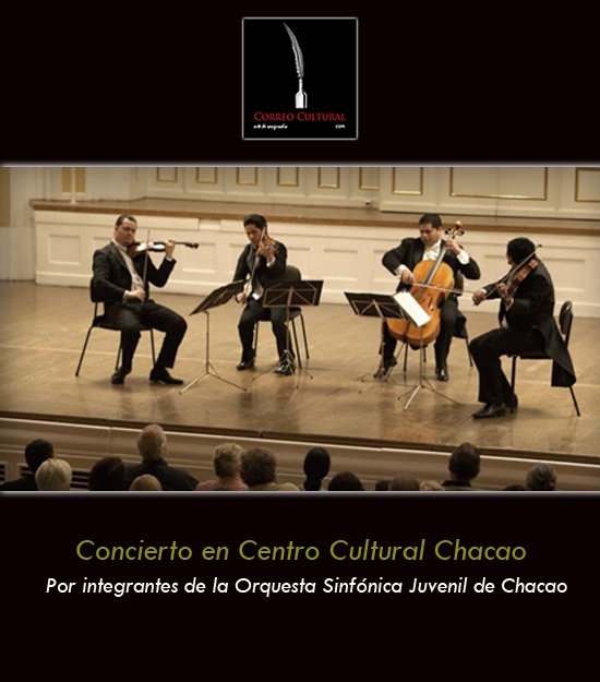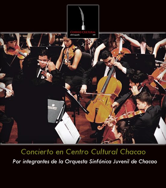 Jóvenes músicos integrantes de la Orquesta Sinfónica Juvenil de Chacao (OSJCH), ofrecerán un concierto el próximo viernes 6 marzo a las 5:30 p.m., en la Sala Experimental del CCCH–Centro Cultural Chacao, Avenida Tamanaco, El Rosal. La entrada es libre.