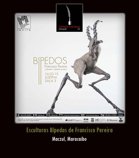 Monstruos internos en la fría y sola oscuridad del inconsciente constituidos en piezas escultóricas de bronce con proporciones y volúmenes alterados de la realidad, y gestos que demarcan una personalidad sostenida con textura y color es la propuesta artística que lleva Francisco Pereira con sus Bípedos, a la Sala 3 del Museo de arte contemporáneo del Zulia a partir del sábado 14 de marzo, la cual permanecerá abierta hasta mediados de junio de 2015