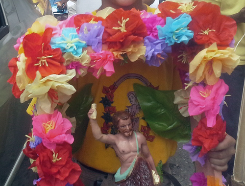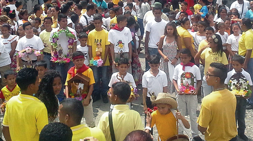 La fiesta en honor a San Juan, se realiza con una procesión por el pueblo, durante la cual los devotos agitan pañuelos de colores, y el santo recibe dádivas, agradecimientos y reconocimientos. Cada cierto tiempo la procesión se detiene y rinde a viva voz homenaje a San Juan. Los bailes de tambores se dan en cada parada; y a su compás el hombre acosa a la mujer, y ésta, entre ritmos eróticos y provocadores, se le escurre; mientras la procesión se dirige a la casa de donde salió el santo; allí se reúnen y continúan la celebración entre fuegos artificiales, bebidas, tambores y bailes.