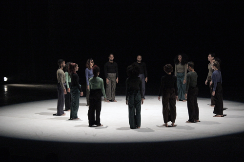 Serífotes, coreografía original de Félix Oropeza “es un ejercicio de virtualidad donde las acciones se compenetran y evolucionan a partir de minúsculas partículas luminosas que aíslan y congregan a los cuerpos más allá de sus propias decisiones”.