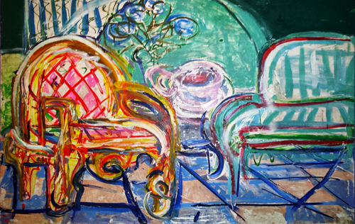 Tres han sido sus iconos: un paisajismo imaginario propio gestualista, lúdico y escénico; una revisión de su memoria infantil; y un acercamiento al cuerpo femenino de una manera sintética y caligráfica. Asimila influencias del paisaje externo, de la arquitectura, de la literatura, de la fotografía y hace uso de diferentes vehículos o soportes. En sus telas están el verdor y las flores, las ventanas y las calles pueblerinas, la música, la imaginería religiosa y popular, los espacios (interiores y exteriores), son todos visiones de un ánima inquieta como la del artista, eminentemente cromática y explosiva. (Texto de Néstor Maya para la exposición Plurales objetos Singulares).