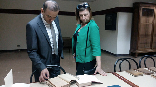 La visita finalizó en la Dirección de Libros Raros y Manuscritos, a cargo del poeta Gabriel Saldivia, quien le mostró ejemplares antiguos de la India, entre ellos: Remettidos da India, de Bulhao Pato, East India and Persia, de John Fryer, e Indian Summer, de Emily Grant Hutchings, los cuales forman parte de los incunables de la República de la India, que datan de 1845.