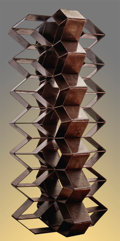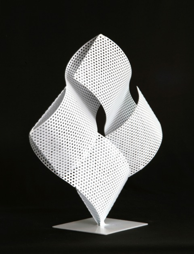 Asimismo, asegura que sus piezas revelan una particular vocación por el orden geométrico y un claro afán por atrapar el espacio, y permiten diversas lecturas sobre la interacción entre forma tangible y espacio intangible, entre equilibrio y asimetría. “Un conjunto de hojas metálicas, impecablemente recortadas y cromatizadas, unidas por estratégicos puntos de soldadura, definen el equilibrio y la levedad a través de una rítmica de delicadas y sinuosas ondulaciones. Esta interacción entre material, equilibrio, ritmo y geometría, en cualquiera de sus variados formatos, constituye la clave de lectura de las obras de Martínez”, indica el crítico.