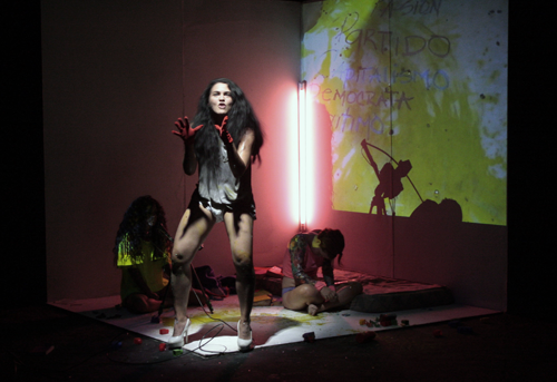 Una estética multisimbólica envuelve la puesta en escena en la que la actuación, se funde con los videos, la plástica y la música.