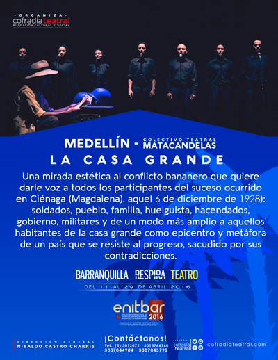 En el 2016 ENITBAR, el Encuentro Internacional de Teatro de Barranquilla en el Atlántico y la región Caribe, llega a su 10 edición, la cual se llevara a cabo del 11 al 29 de abril, y tiene como línea temática INDUSTRIAS CULTURALES. Este encuentro promete reunir las compañías más acogidas del 2007 al 2015 e innovar con puestas en escena reconocidas por su trayectoria nacional e internacional.
