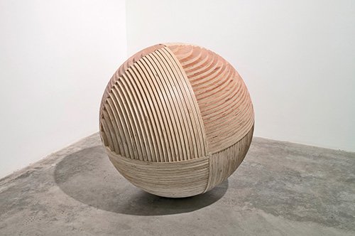 Sin aparente conexión o tema en común Vicente Antonorsi y Jorge Cabieses se asientan en una misma esquina: Vicente Antonorsi propone una esfera (De la serie Esferas de Perú, 2016) de casi un metro de circunferencia que cae directamente al piso tanto por su peso físico como por su gran calidad autoral, realizada con un impecable multilaminado de madera (contrachapada) que nos hace casi sentir como giran las fibras del material hasta quedar entrecruzadas. Al subir la mirada, Jorge Cabieses (de origen peruano) nos hipnotiza a través de su serie de collages titulados Mirabilia (2015-2016), con la misma ilusión óptica de una forma que gira y se retuerce para llevarnos a otro espacio/tiempo pero con ayuda de elementos gráficos bidimensionales e ilustraciones antiguas que nos hacen cuestionar los significados de las formas del pasado, del presente y del futuro.