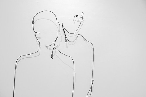 Jonidel Mendoza dialoga en la misma sala consigo mismo o con su sombra a través de dibujos realizados con cables de electricidad (Ecos del Reflejo, 2016), continuando con su investigación de «materiales pesados que levitan» y se proyectan en el espacio multiplicando la figura como si se tratase de una multitud que nos mira desde la vitrina.