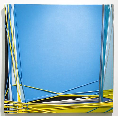 Para cerrar el recorrido, Paulo Castro vuelve a su serie Bubble Gum (2016) de lasTensopinturas reverberando toda la galería con intensas combinaciones de color en dos formatos de plástica seductora.