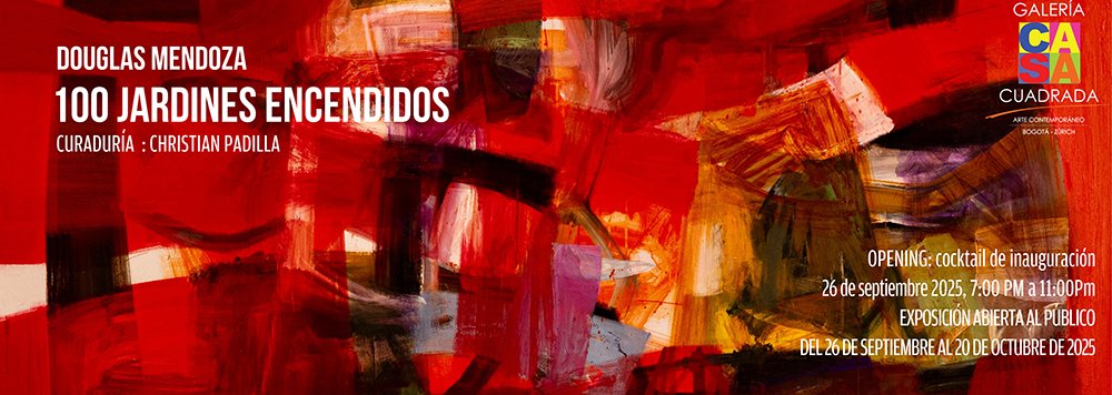 La exposición “100 Jardines Encendidos” del artista Douglas Mendoza, se inaugura el 26 de septiembre de 2025 en Galería Casa Cuadrada de Bogotá