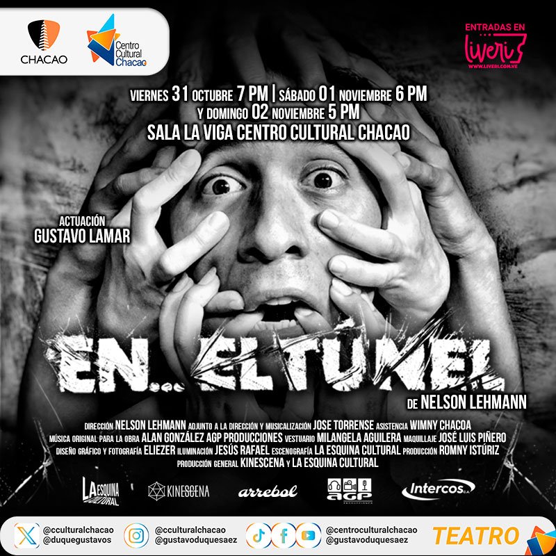 El Centro Cultural Chacao se convierte una vez más en la sede de una de las propuestas teatrales más intensas de la temporada, se trata del monólogo «EN… EL TÚNEL», una obra que promete sumergir al público en el abismo psicológico de un hombre al borde de la locura.
