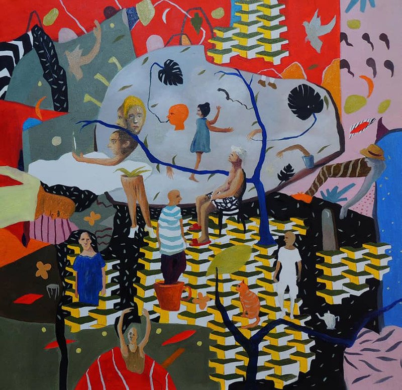 Álvaro Paz pinta desde la piel de la ciudad. Sus personajes no posan: respiran, esperan, caminan, sueñan. En ellos hay cansancio y belleza, un brillo que sobrevive entre el polvo. Sus líneas —a veces feroces, otras tiernamente torcidas— parecen dibujar no lo que ve, sino lo que recuerda. En cada figura se siente la memoria del afecto, la fragilidad de lo cotidiano y la voluntad de permanecer. Su pintura no busca testimoniar, sino acompañar. Álvaro no retrata cuerpos: retrata presencias. Su trazo conmueve sin pedir compasión, y su color vibra como una voz que, aun entre el ruido, elige seguir diciendo.