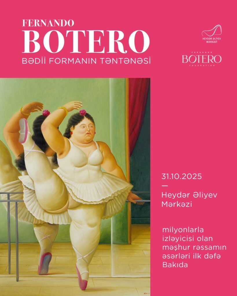 Las obras del famoso pintor y escultor colombiano Fernando Botero, se exhibirán en Bakú (capital de Azerbaiyán), por primera vez el 31 de octubre en el “Fin de Semana del Arte. Siente el Futuro AHORA”, organizado por la Fundación Heydar Aliyev y la Fundación Fernando Botero.