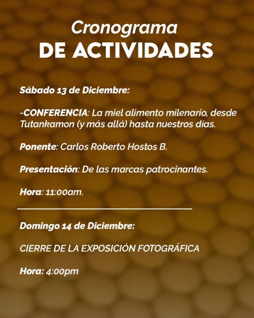 En esta muestra se presentará una selección de impactantes fotografías dedicadas exclusivamente a las abejas: sus vuelos, su trabajo dentro de las colmenas, la polinización y la relación con las flores. Cada pieza captura de forma artística y sensible la belleza de estos seres vitales, resaltando su delicadeza, inteligencia y la importancia que tienen para la vida en el planeta. La muestra busca generar conexión, admiración y conciencia sobre la labor silenciosa que realizan estos pequeños polinizadores, uniendo arte, ecología y preservación.