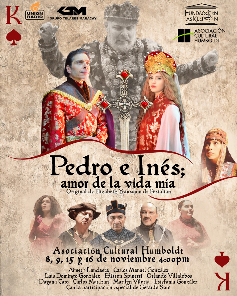 “Pedro e Inés: Amor de la vida mía” se presentará en la Sala Alexander von Humboldt de la Asociación Cultural Humboldt los días 8, 9, 15 y 16 de noviembre a las 4:00 p.m.