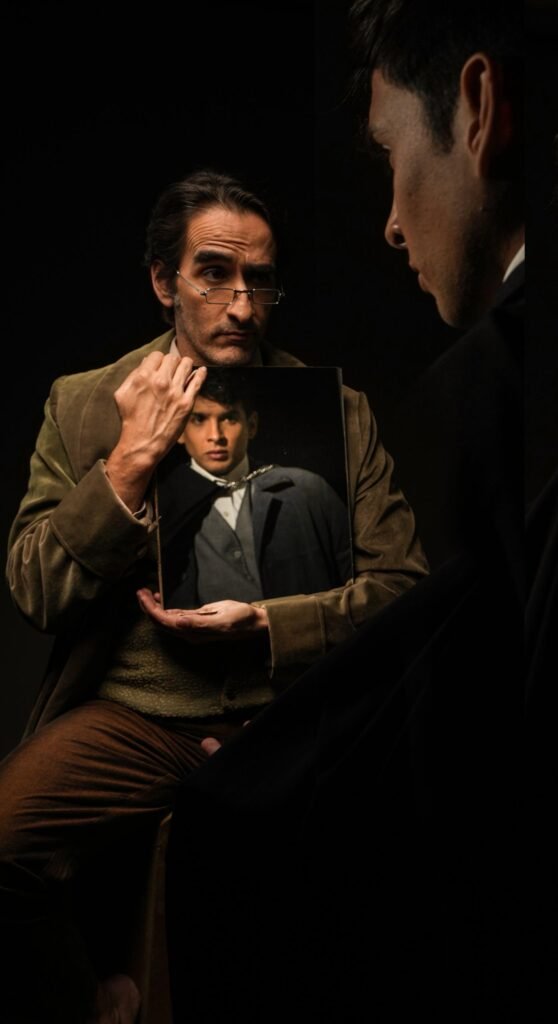 La puesta en escena engloba la importancia de reflejarnos frente al espejo, buscando una oportunidad para reconciliar la imagen externa con la interna. Hacer una introspección en ambos personajes y en el público que la mira, desde el teatro el reflejo es propicio para ser consciente de emociones que surgen, revelarnos además estados internos que presenta el ser humano.