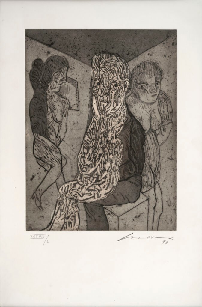 Piezas de Luis Caballero, Umberto Giangrandi, Leonel Góngora (la iconica Miss Pimm, de 1982) y el mexicano José Luis Cuevas remiten a las distintas vertientes de la neofiguración. En el ámbito expresionista, también se presenta un raro grabado de Débora Arango, que sale por primera vez a subasta, en el que se manifiesta su característico anticonvencionalismo en la representación de la mujer”.