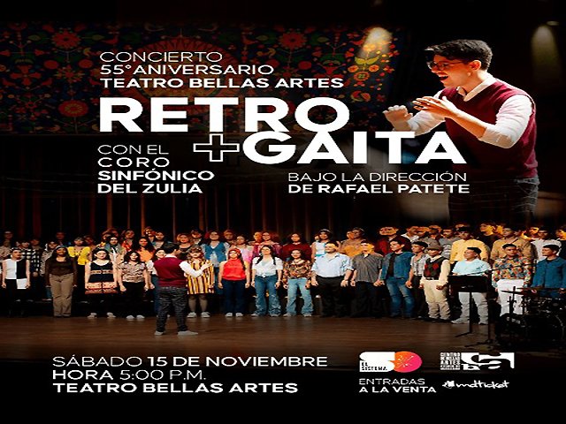 El concierto, que promete un recorrido musical por el género retro y la tradicional gaita zuliana, se llevará a cabo el próximo sábado 15 de noviembre a las 5:00 de la tarde en las instalaciones del Teatro Bellas Artes.