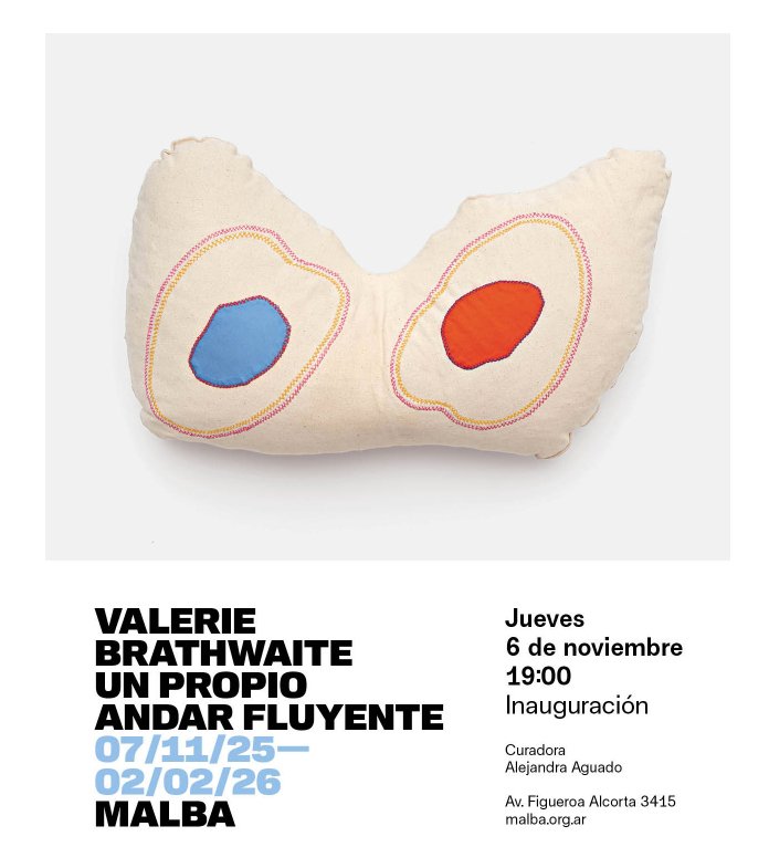 In Arte & Cultura, Eventos Inauguración «Valerie Brathwaite. Un propio andar fluyente» — Jueves 6 de noviembre, 19:00 1 noviembre, 2025 Pin It Malba Av. Figueroa Alcorta 3415 C1425CLA Buenos Aires, AR Buenos Aires, Argentina Noviembre,2025 Compártelo:Haz clic para compartir en Twitter (Se abre en una ventana nueva)Haz clic para compartir en Facebook (Se abre en una ventana nueva) Relacionado #Abstracción#AlejandraAguado#ArteContemporáneo#ArteFemenino#ArteLatinoamericano#Curaduría#Escultura#Figuración#UnPropioAndarFluyente#ValerieBrathwaiteCaribedibujoexposiciónInauguraciónmuseo Share You may also like View Post Esculturas recientes de José Luis Guerrero: el metal convertido en trazo y movimiento. View Post Sala TAC inicia Ciclo de conversaciones textiles: Unir el hilo. View Post Galería ABRA presenta exposición “Intenciones y soluciones” en el Centro de Arte Los Galpones View Post Inauguración PREMIOS NACIONALES DE PINTURA 1940 – 1969. View Post UNA exposición única. DOS subastas imperdibles, en Bogotá Auctions. View Post La visión de Susan Applewhite sobre José Gregorio Hernández se expone en la Hacienda. View Post «Realidades Alteradas» en 5 Sentidos Art Gallery. Previous Post Noviembre en La Cometa… In Arte & Cultura Noviembre en La Cometa | November at La Cometa View Post Next Post Estudiantes de la UCAB presentan… In Educación Estudiantes de la UCAB presentan investigación sobre “Doble Empoderamiento” en conferencia científica internacional View Post