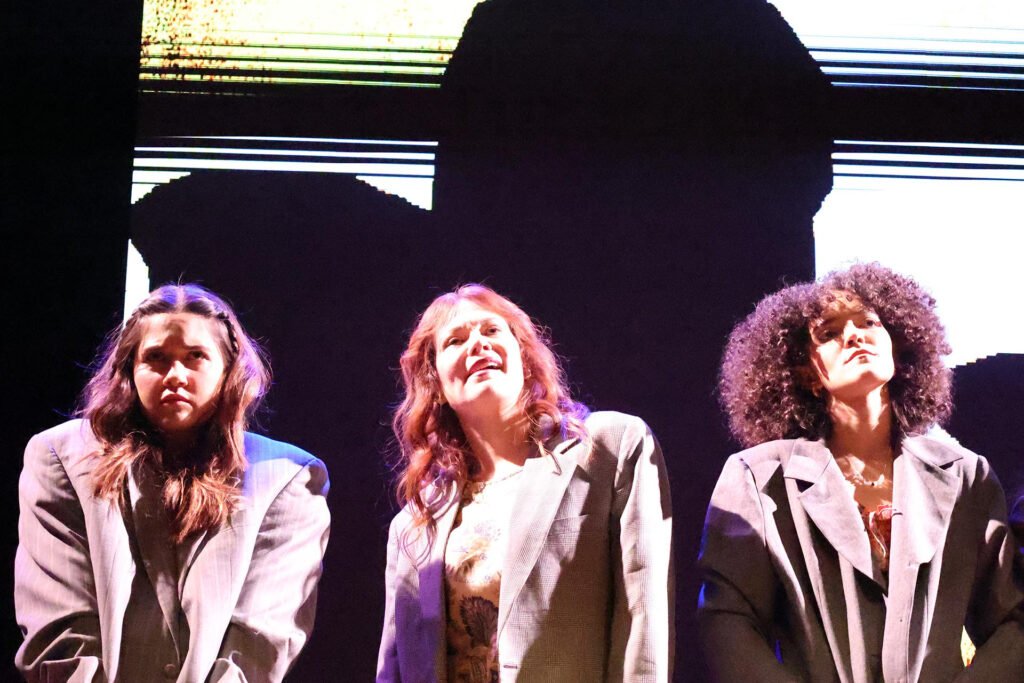Para materializar esta potencia narrativa, la dirección reunió a un elenco estelar: Marielena González, Marilyn Chirinos, Valentina Garrido y Gioia Arismendi, quienes prestaron su talento a estas voces silenciadas. La puesta en escena, una experiencia inmersiva, integró proyecciones de Luyo Castillo que convirtieron el espacio en una «caja de resonancia visual», mientras la música en vivo de Gian Piero Freites y Jesuán, junto al conmovedor coro conformado por Bárbara Acevedo, Ana Celeste Mucci, Gabriela Villalobos, Ruby Martínez y Rose Ordóñez, funcionó como el tejido emocional y la voz colectiva de la denuncia. El vestuario de Antón Figuera y la iluminación de Ricardo Nortier completaron un montaje de una cohesión artística impecable.