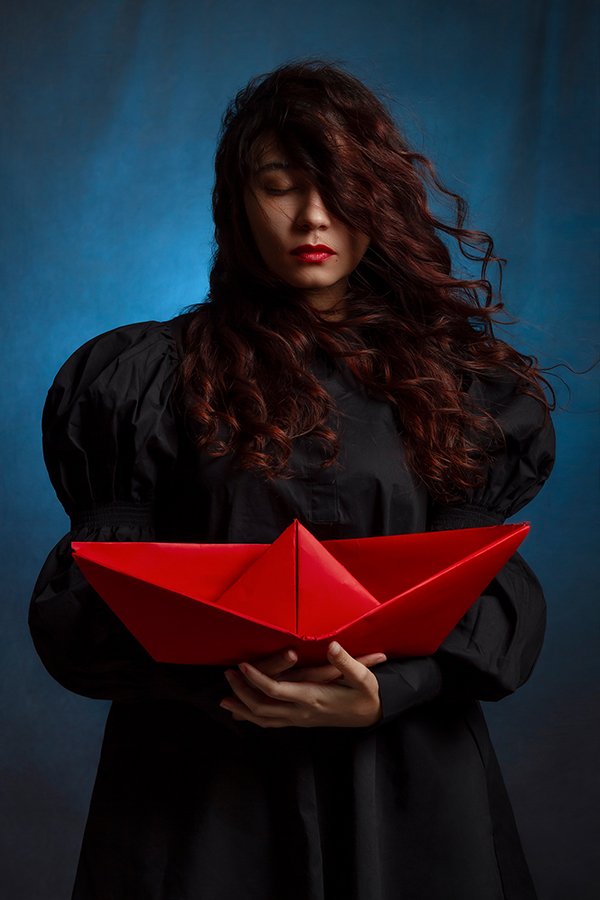 La fotografía, dice Mejías, “es ficción desde el instante en que decides qué incluir o qué dejar fuera”. Esa conciencia la lleva a construir escenarios cargados de simbolismo: el azul como recuerdo de infancia, un barco de papel como metáfora del padre, un gesto cerrado como señal de introspección.