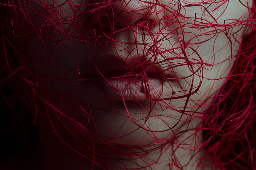 En sus series Adentro y Señorita, Yus Mejías trazó un mapa emocional del aislamiento y la fe. Adentro, concebida tras la pandemia, explora el silencio interior, la soledad y la pausa. Señorita, en cambio, aborda la religiosidad, los prejuicios y la identidad desde una estética colorida, casi barroca. Ambas confluyen en su serie más reciente, Mutismo, donde los labios sellados se convierten en metáfora del silencio impuesto y de la palabra contenida.
