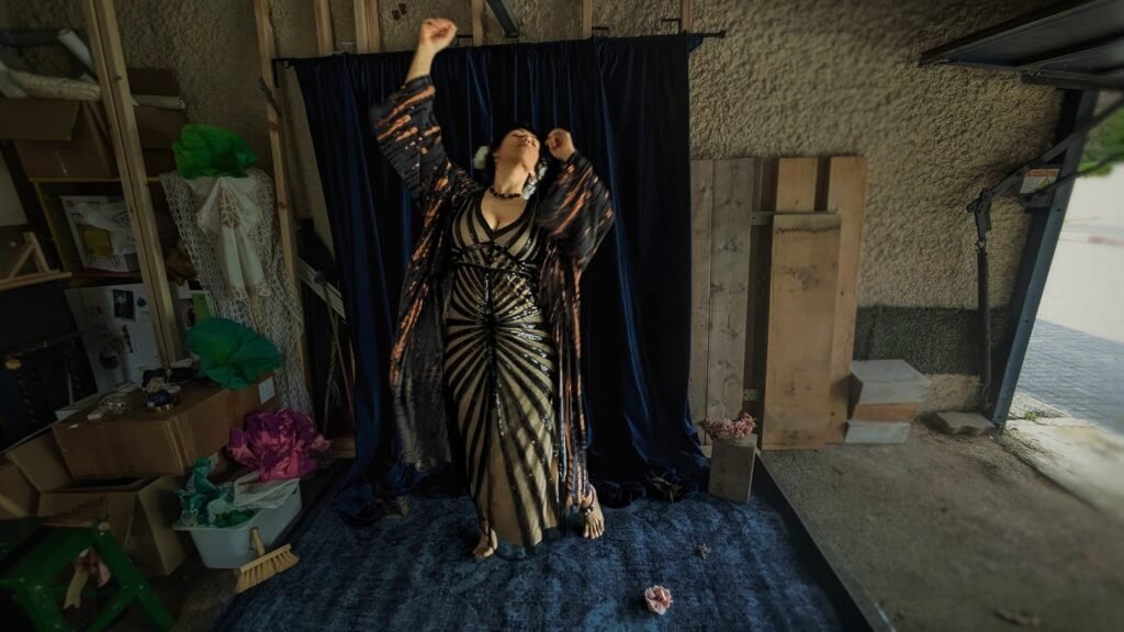 Su más reciente proyecto, Oracle, es una experiencia artística inmersiva concebida como un recorrido sensorial en tres actos. Lejos de plantearse como un espectáculo convencional, la obra invita al público a transitar por distintas “cámaras” —Adivinación, Blanca y Negra— diseñadas para activar la percepción corporal y la intuición a través de estímulos visuales, sonoros, performativos y culinarios.