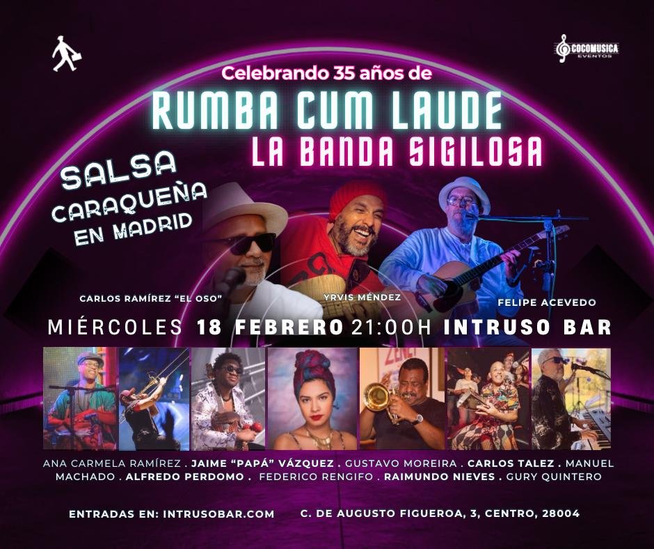 Madrid se prepara para una noche de sabor, ritmo y excelencia musical con Rumba Cum Laude, el concierto de La Banda Sigilosa, una propuesta que trae la salsa caraqueña desde una mirada vibrante, actual y profundamente bailable, para celebrar por todo lo alto los 35 años del lanzamiento de ese primer LP que le da nombre a este concierto: Rumba Cum Laude.