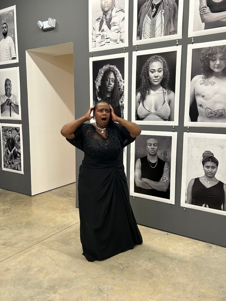 La experiencia se amplificó con la presencia del equipo de trabajo de Muholi. Una cantante de voz profundamente conmovedora, un cuerpo de baile que asumía a la vez funciones logísticas y performativas, y una atmósfera que desdibujó los límites entre inauguración, acción colectiva y ritual. Nada parecía accesorio. Todo respondía a una ética del cuidado, de la colaboración y del estar juntos.
