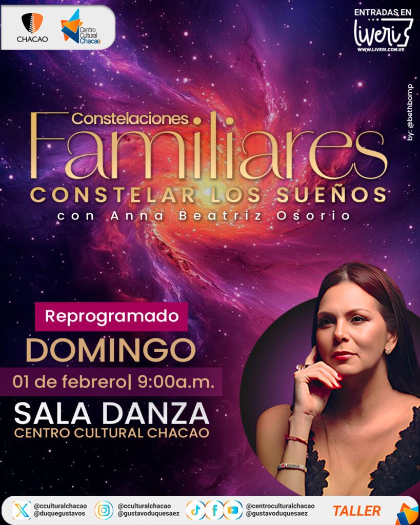 El Centro Cultural Chacao abre sus puertas a una experiencia de sanación y autodescubrimiento con el taller de Constelaciones Familiares “Constelar los Sueños”, que se llevará a cabo el próximo domingo 01 de febrero, de 9:00 a.m. a 1:00 p.m.