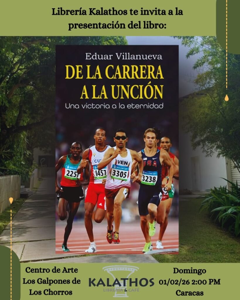 El corredor venezolano Eduar Villanueva, quien hizo historia en el medio fondo y portó la bandera nacional en dos Juegos Olímpicos (Beijing 2008 y Londres 2012), anuncia un cambio de vida con el lanzamiento de su libro testimonial, «De la carrera a la unción. Una victoria a la eternidad», el cual será presentado el domingo 1 de febrero de 2026 a las 2:00 p.m., en la Librería Kalathos del Centro de Arte Los Galpones.