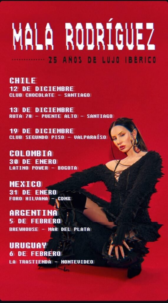 La sala de conciertos Latino Power anuncia la presentación de La Mala Rodríguez el próximo 30 de enero de 2026 en Bogotá.