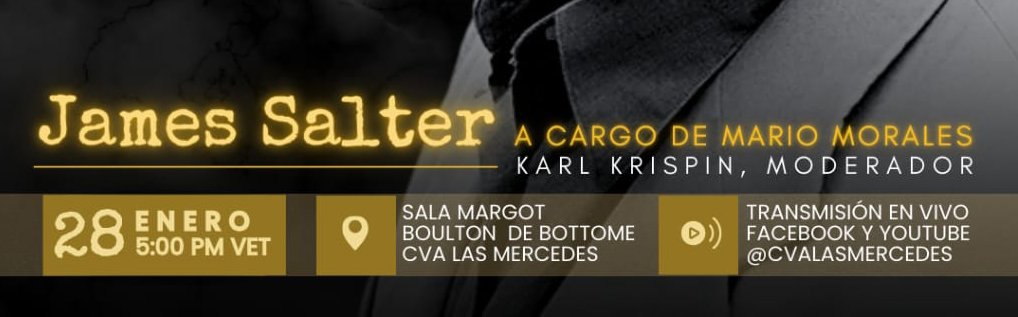 La conferencia de Mario Morales sobre James Salter se dictará de manera online el 28 de enero de 2026 a las 5:00 p.m., y será transmitida en vivo a través de las plataformas de Facebook y YouTube @cvalasmercedes, así como también, en la Sala Margot Boulton de Bottome del Centro Venezolano Americano, ubicado en la Avenida Principal de Las Mercedes, Caracas.