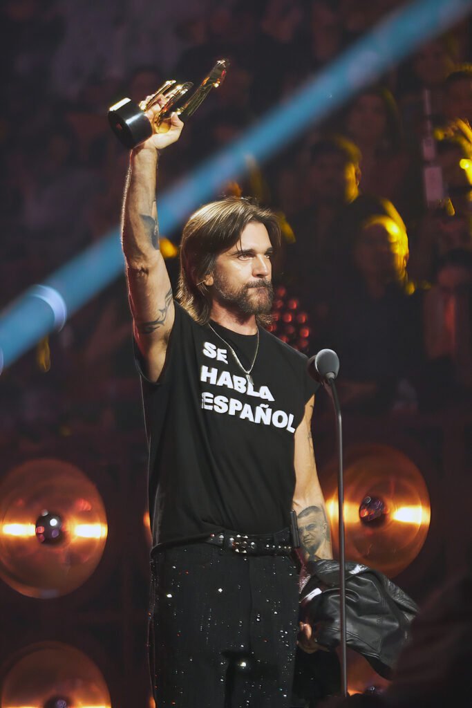 Juanes honró sus raíces y trajo al presente su legendario mensaje de “Se habla español” estampado en su camiseta al recibir el