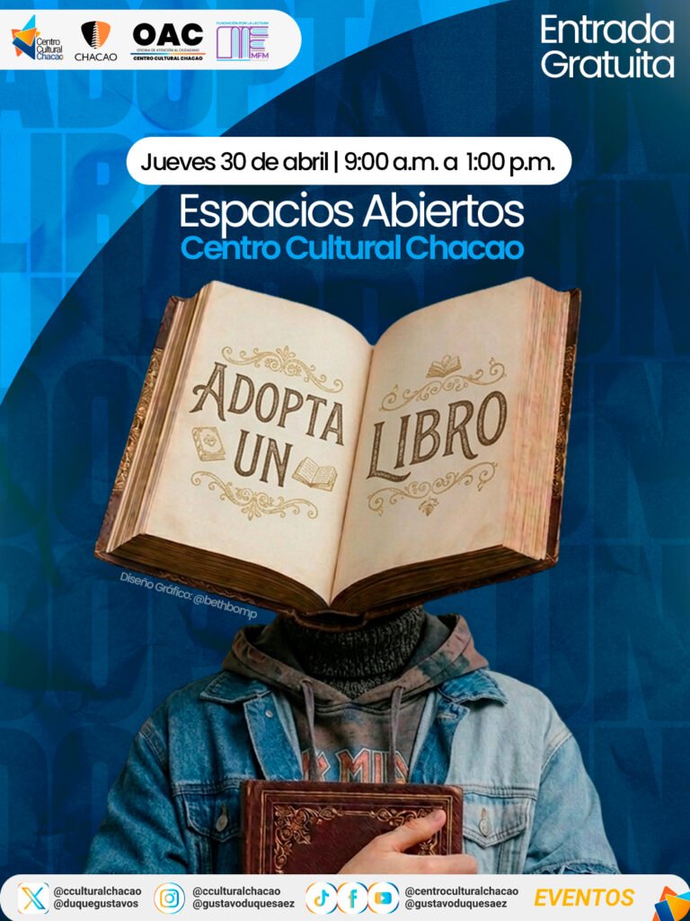 En el marco de las celebraciones globales por el Mes del Libro, los espacios abiertos del Centro Cultural Chacao se convertirán este jueves 30 de abril, en el epicentro de la generosidad literaria. Gracias a una alianza entre la Oficina de Atención al Ciudadano (OAC) de la institución y la Fundación para la Lectura Mariana Flores Melo, se realizará la esperada actividad «Adopta un Libro».