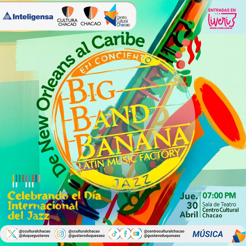 En el marco del Día Internacional del Jazz, la Big Band Banana regresa al escenario que los vio nacer, el Centro Cultural Chacao, para deleitar a su audiencia con su propuesta «De New Orleans al Caribe», un viaje musical que conecta las raíces del jazz tradicional con la creatividad del jazz moderno y el sabor del latín jazz.