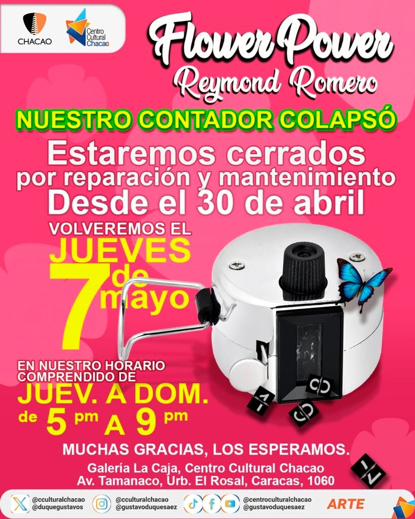 «Flower Power» es una impactante instalación inmersiva de gran escala creada por el reconocido artista venezolano Reymond Romero, en la Galería La Caja del Centro Cultural Chacao. Esta monumental odisea textil, que se aleja de los formatos tradicionales para proponer una experiencia multisensorial única donde la memoria, el color y el hilo se entrelazan de manera magistral, con entrada gratuita y cuyo horario habitual es de jueves a domingo de 5:00 p.m. a 9:00 p.m.