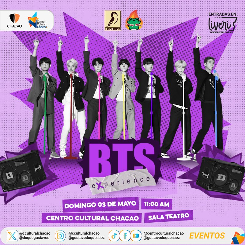 El próximo domingo 3 de mayo, el Centro Cultural Chacao recibirá el BTS Experience, a fan curated audiovisual celebration, una experiencia colectiva única que rompe los esquemas tradicionales al presentarse como un show interactivo, tipo VJ set, donde los fans son los protagonistas. Las entradas ya están a la venta en www.liveri.com.ve, taquillas de Cinex en Caracas y en la taquilla del teatro para este evento que iniciará con la apertura de puertas a las 10:00 a. m. y el show principal a las 11:00 a.m. La jornada no solo ofrece un despliegue visual y sonoro de alto impacto, sino que se extiende hasta las 6:00 p. m. con un bazar temático abierto al público, consolidándose como el punto de encuentro definitivo para el fandom ARMY y los seguidores de la cultura coreana en el país.