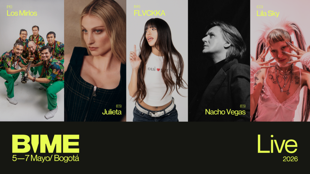 Al mismo tiempo, BIME Live convertirá a Bogotá en un gran escenario donde descubrir las propuestas musicales más innovadoras del momento con artistas como Flvckka (MX), Jambene (VE), Julieta (ES), Lila Sky (CO), Los Mirlos (PE), Boza (PA) y Nacho Vegas (ES).