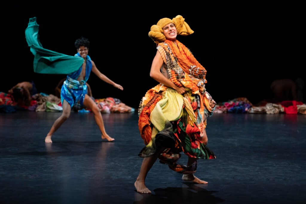 Rodrigues utiliza una estética construida con objetos simples y cotidianos y es así como cientos de colchas de colores vivos y estampados, que la coreógrafa compró en los mercados de Río de Janeiro, transforman los cuerpos de los once intérpretes en figuras y en composiciones que evocan un Brasil lleno de contrastes y complejidades.