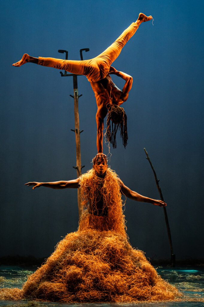 “‘Encantado’ habla de esa posibilidad de imaginar otro mundo donde no hay algo que es más importante que el otro. Y las figuras no son binarias, se transforman todo el tiempo. Yo creo que son como la naturaleza”, dice Rodrigues, quien desde hace más de 20 años trabaja con su compañía en la favela de Maré, en Río de Janeiro.