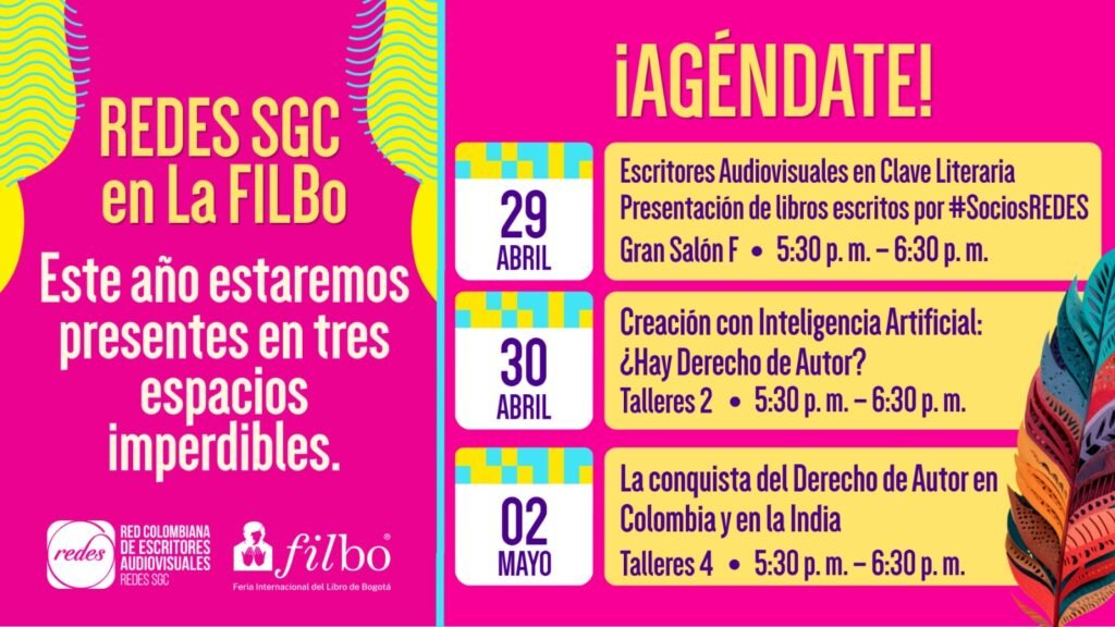 Por primera vez en su historia, la FILBo abre un espacio oficial para los rostros y las letras de quienes escriben el cine y la televisión en Colombia. REDES SGC, es la Sociedad de escritores audiovisuales que está detrás de esta conquista con tres charlas dentro de la programación oficial de la Feria, los días 29 y 30 de abril y el 2 de mayo.