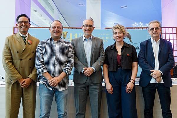 Presentación de Iberfests. De izquierda a derecha: Edward Venero , Andrés Bayona, Guillermo Arturo Gómez Mata, Gabriela Sandoval y Juan Antonio Viga; en la edición 41 del Festival Internacional de Cine en Guadalajara (FICG). Guadalajara, Jalisco, México. Lunes 20 de abril de 2026. Foto :copyright: FICG / Ana Cristina Rodríguez M